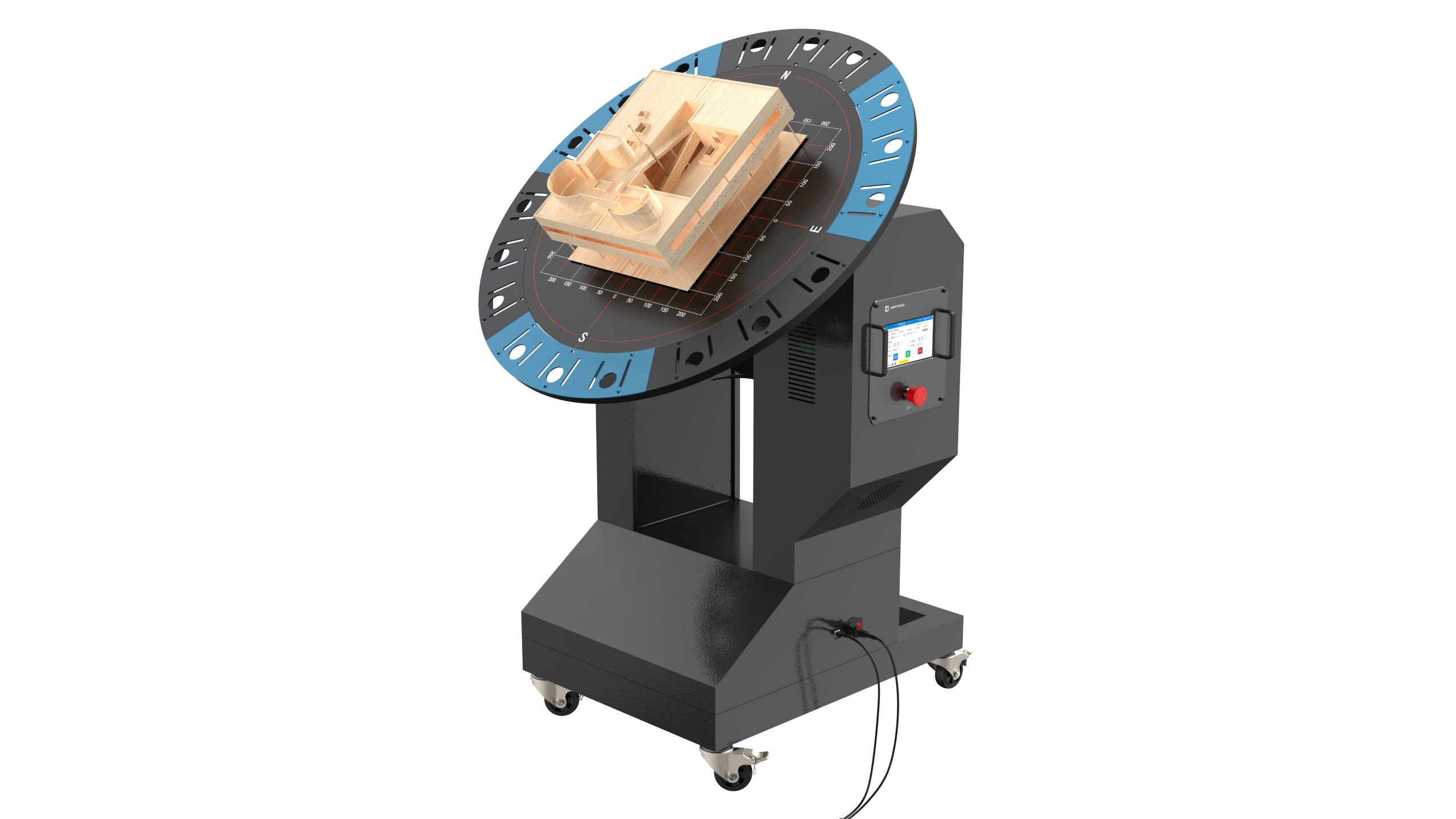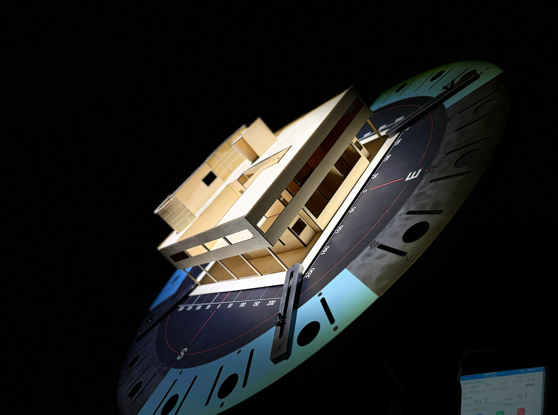 在测试操作台上可固定建筑缩尺模型,操作台直径1000mm,可放置比例介于1: 50~1: 20之间的建筑模型,可查看某一地区、某一时刻的日影,也可设置为自动连续变化的动态轨迹,可在短时间内直观地查看某一时间段的日影变化情况。